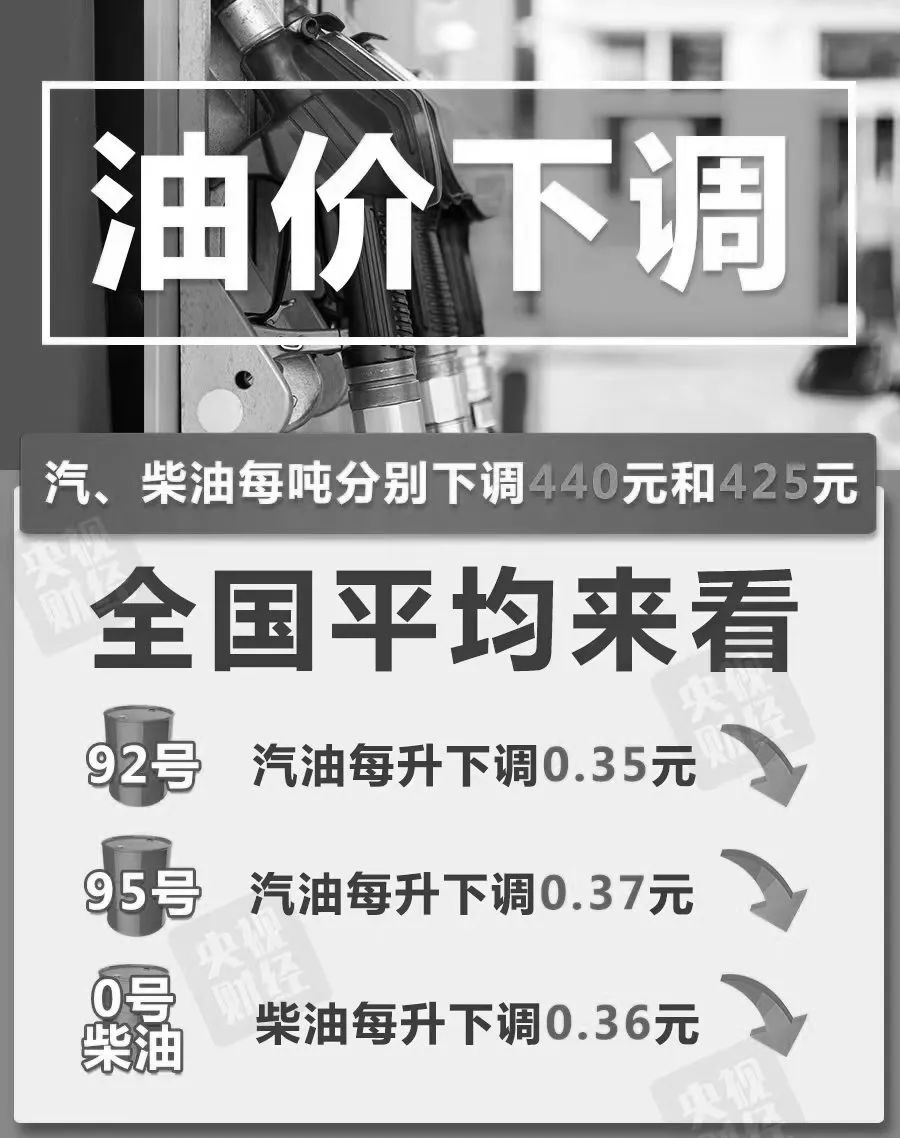 央視財(cái)經(jīng)記者從國家發(fā)改委獲悉,受國際油價(jià)大幅下跌影響,國內(nèi)成品油價(jià)格連續(xù)第二次下調(diào),部分地區(qū)92號(hào)汽油重回7元區(qū)間。本次油價(jià)調(diào)整具體情況如下:國內(nèi)汽、柴油零售限價(jià)每噸分別下調(diào)440元、425元。