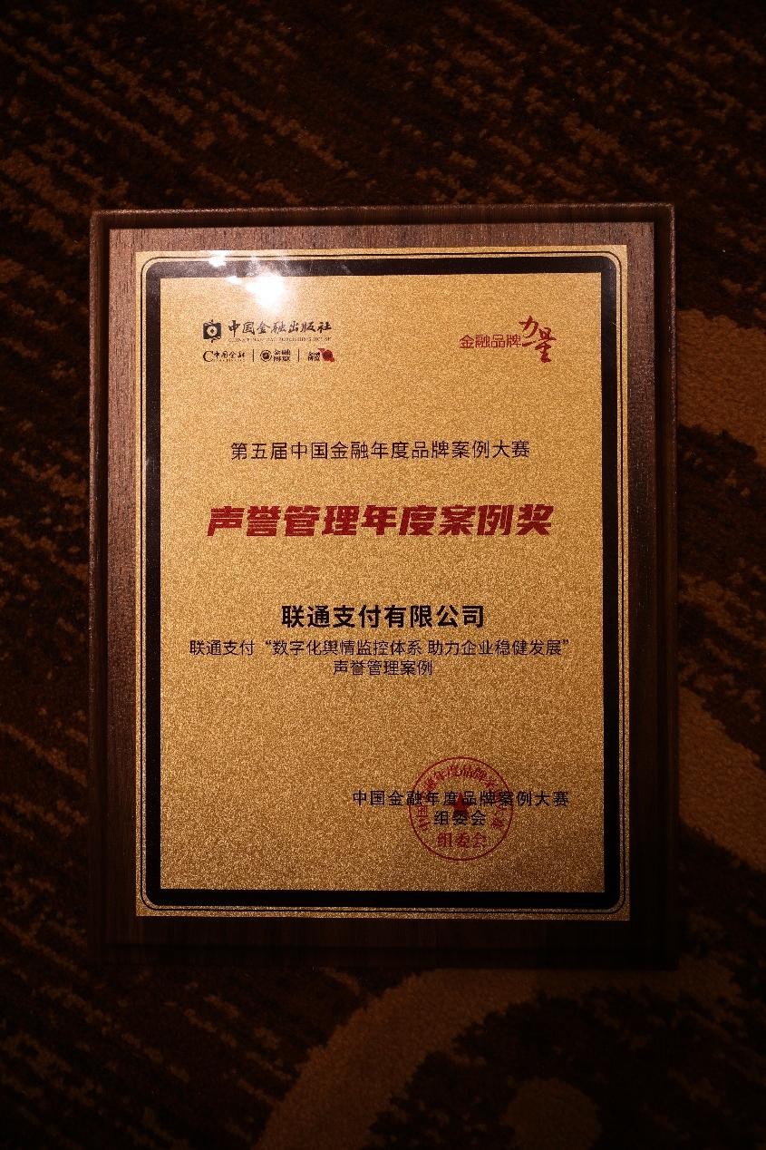 近日,中國(guó)金融品牌年會(huì)暨第五屆中國(guó)金融年度品牌案例大賽頒獎(jiǎng)典禮在北京圓滿落幕。本次大賽中,聯(lián)通支付有限公司(簡(jiǎn)稱“聯(lián)通支付”)憑借《數(shù)字化輿情監(jiān)控體系助力企業(yè)穩(wěn)健發(fā)展聲譽(yù)管理案例》榮獲聲譽(yù)管理年度案例獎(jiǎng),聯(lián)通支付已蟬聯(lián)四次該獎(jiǎng)項(xiàng)。