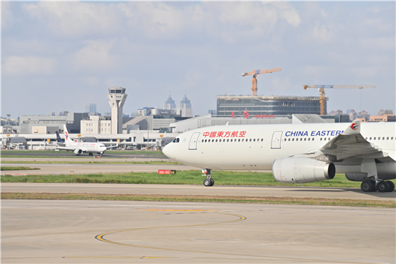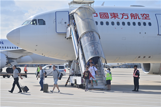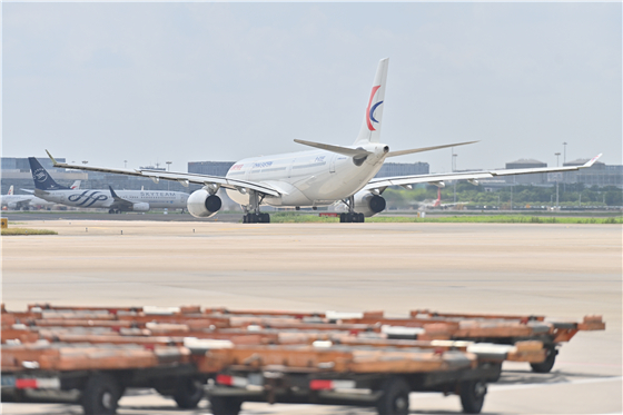 東航機務(wù)正在為一架剛落地的客機機輪通風散熱