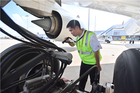 面對艱苦的工作,潘陳卻沒有什么怨言,他認為這些是自己職業(yè)生涯歷練成長的一部分,“航班旺季每一個機務(wù)都很忙,大家都有許多工作要完成。作為一名新人,我的技術(shù)水平暫時還不能完成那些高難度的維修工作,所以這些體力活我就多承擔一些,雖然辛苦,但是只要肯干就一定會有收獲?!迸岁愡@樣說道。