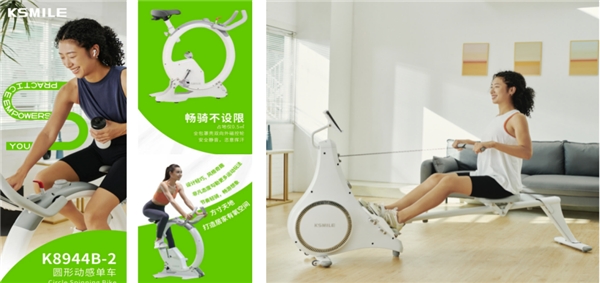 KSMILE為新世代年輕人打造的居家個性健身品牌,將健身與娛樂、智能科學(xué)、自我管理融為一體,為家用健身行業(yè)注入新的活力。本屆體博會KSMILE展示了智能科技與顏值兼?zhèn)涞呐懿綑C(jī)、健身車、劃船機(jī)等產(chǎn)品,讓現(xiàn)場觀眾親身體驗康樂佳為家庭用戶提供的高品質(zhì)健身器材??梢灾攸c關(guān)注K8944B-2圓形動感單車、K8328BSW自發(fā)電立式車、K8750TP-1等產(chǎn)品。