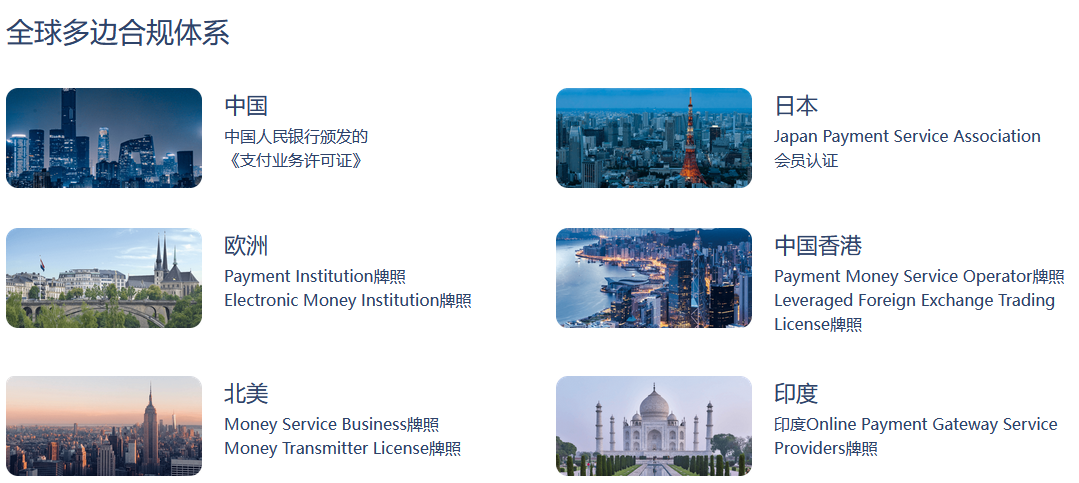 作為資金流服務的關鍵環(huán)節(jié),支付在多數(shù)國家都是重點監(jiān)管的項目。在跨境匯兌、資金分發(fā)等服務中,支付牌照作為展業(yè)的基礎,是企業(yè)合規(guī)能力的直接體現(xiàn)。多年來,PingPong福貿(mào)始終堅持“牌照先行,資質(zhì)先行”理念,致力于在全球范圍內(nèi)多個主要經(jīng)濟體國家及地區(qū)爭取獲得合規(guī)牌照,以打造堅實穩(wěn)固的全球多邊合規(guī)體系。目前已擁有中國、歐洲、美國、日本、印度、澳大利亞等主要經(jīng)濟體的數(shù)十張支付類牌照及認證資質(zhì),是國內(nèi)少有的雙邊持牌支付企業(yè)。