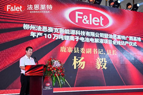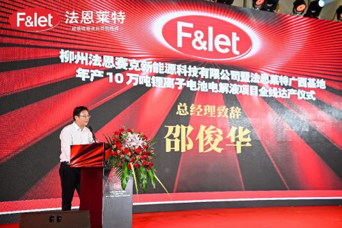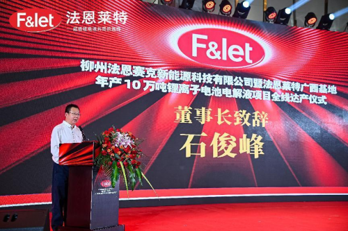 儀式上,法恩萊特邵俊華總經(jīng)理在致辭表示:柳州法恩賽克項目不僅是法恩萊特在華南區(qū)域作出的重大戰(zhàn)略部署,更是法恩萊特面向全球布局的重大舉措。法恩萊特將以此次項目全線達(dá)產(chǎn)為新的起點(diǎn),發(fā)揮公司的技術(shù)、戰(zhàn)略、規(guī)模和品牌等優(yōu)勢,深耕細(xì)作新能源鋰電池行業(yè)材料電解液市場,深化新能源鋰電池行業(yè)更大范圍、更寬領(lǐng)域的務(wù)實(shí)合作,為新能源汽車、儲能系統(tǒng)、消費(fèi)電池客戶提供更具優(yōu)勢、更高性能的超級鋰電池電解液解決方案,為新能源行業(yè)的持續(xù)創(chuàng)新貢獻(xiàn)更多力量。
