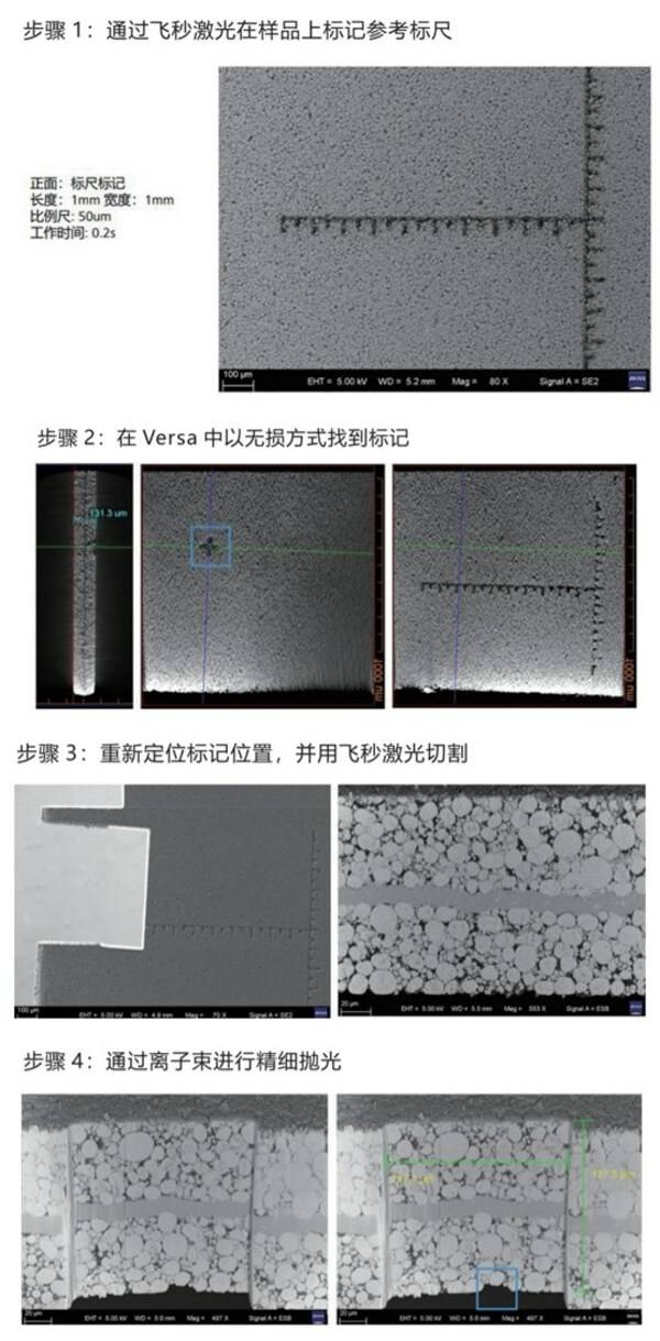 Versa + FIB-SEM + Fs-laser 關(guān)聯(lián)測試 來源:蔡司