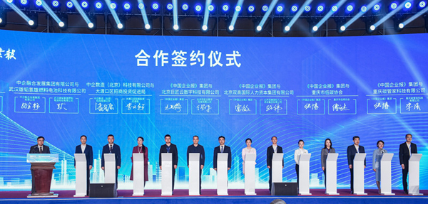 會議還舉行了集中簽約儀式?!吨袊髽I(yè)報》集團(tuán)與航天科工海鷹集團(tuán)有限公司、北京巨匠云數(shù)字科技有限公司、北京雙高國際人力資本集團(tuán)有限公司、重慶市低碳協(xié)會、重慶碳管家科技有限公司,中企融合發(fā)展集團(tuán)有限公司、武漢雄韜氫雄燃料電池科技有限公司,中企數(shù)造(北京)科技有限公司與大渡口區(qū)政府分別舉行了合作簽約儀式。下一步,《中國企業(yè)報》集團(tuán)將與簽約各方進(jìn)行深入長期的合作,為促進(jìn)產(chǎn)業(yè)升級發(fā)展和政企互動合作夯基礎(chǔ),建平臺,增動力。