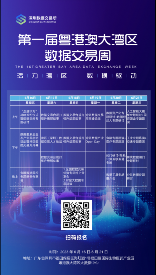深圳數(shù)據(jù)交易所作為數(shù)據(jù)交易市場的先行者與推動者,積極聯(lián)通線上線下,共同打造灣區(qū)數(shù)據(jù)交易盛會,不斷探索數(shù)據(jù)交易發(fā)展的創(chuàng)新思路。為激發(fā)數(shù)據(jù)交易市場活力,在市發(fā)展改革委指導下,深圳數(shù)據(jù)交易所聯(lián)合深圳國家高技術產(chǎn)業(yè)創(chuàng)新中心將于2023年6月16日-21日舉辦“第一屆粵港澳大灣區(qū)數(shù)據(jù)交易周”系列活動,圍繞金融、醫(yī)療、工業(yè)、交通等行業(yè)舉辦近20場專題路演、產(chǎn)品宣講、交易撮合、企業(yè)參觀等活動。