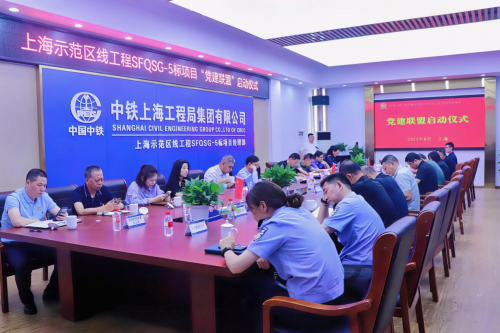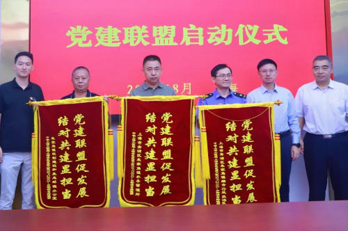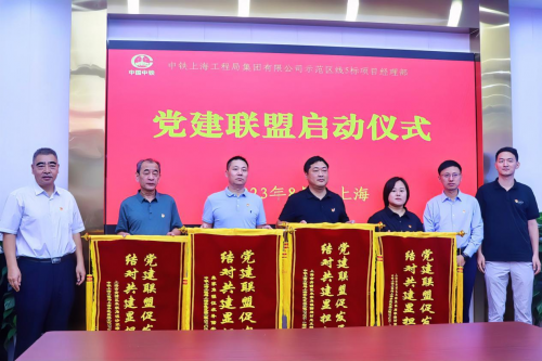 啟動儀式現(xiàn)場,青浦區(qū)朱家角鎮(zhèn)黨委委員王磊,中鐵上海工程局集團(tuán)有限公司城建分公司黨委副書記、工會主席張文續(xù),上海申鐵投資有限公司項(xiàng)目經(jīng)理何喬石現(xiàn)場為各聯(lián)建單位授予“黨建聯(lián)盟促發(fā)展,結(jié)對共建顯擔(dān)當(dāng)”錦旗,并共同見證上海示范區(qū)線5標(biāo)項(xiàng)目部與各單位締結(jié)《黨建聯(lián)建協(xié)議書》。據(jù)了解,聯(lián)盟成立后,各聯(lián)建單位將相互交流黨建工作經(jīng)驗(yàn),共同開展黨建共建活動,通過推進(jìn)區(qū)域化黨建,盤活黨組織力量資源,實(shí)現(xiàn)黨建與生產(chǎn)深度融合,以高質(zhì)量黨建引領(lǐng)高質(zhì)量發(fā)展。