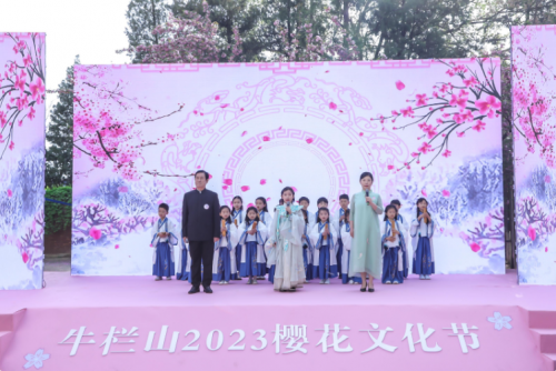 開幕式在孩子們的朗朗讀書聲中緩緩拉開,一群少年身著漢服在朝陽中誦讀《少年中國說》、《水調(diào)歌頭》。牛欄山地區(qū)黨委書記姜惠琴在致辭時表示:“以櫻花為媒,舉辦此次櫻花節(jié)活動,以沉浸式場景演出,融入全民閱讀,文明創(chuàng)城等活動,相信能夠給大家?guī)硪粓鑫幕⒀?#xff0c;也將為順義區(qū)打造一個更加亮麗、持久的文化旅游城市名片。”4月23日,將迎來第28個世界讀書日。牛欄山作為全國文明鎮(zhèn),姜惠琴在此倡導(dǎo)大家多讀書,讀好書,以書為媒,為文明創(chuàng)城創(chuàng)建賦能添彩,讓全民閱讀之氣彌漫,讓文明在全社會蔚然成風(fēng)。