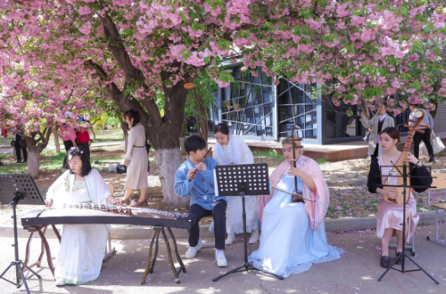 賞櫻線路上,櫻花大道內(nèi)一群青年大學(xué)生身懷技藝,各式才藝展演,民樂、古箏獨奏、管弦、鋼琴獨奏、快閃《愛出發(fā)》《花海》《青春練習(xí)冊》《不得不愛》《后會無期》街舞、中國舞、樂隊青春活力,青年大學(xué)生校園科技文化展示區(qū)機器人展示、大賽作品及藏品展、模型沙盤互動、環(huán)保、創(chuàng)城互動區(qū)地球日主題、綠色農(nóng)業(yè)創(chuàng)城理念、經(jīng)濟普法知識互動,展示了當(dāng)代大學(xué)生的蓬勃的創(chuàng)新精神和社會責(zé)任感。