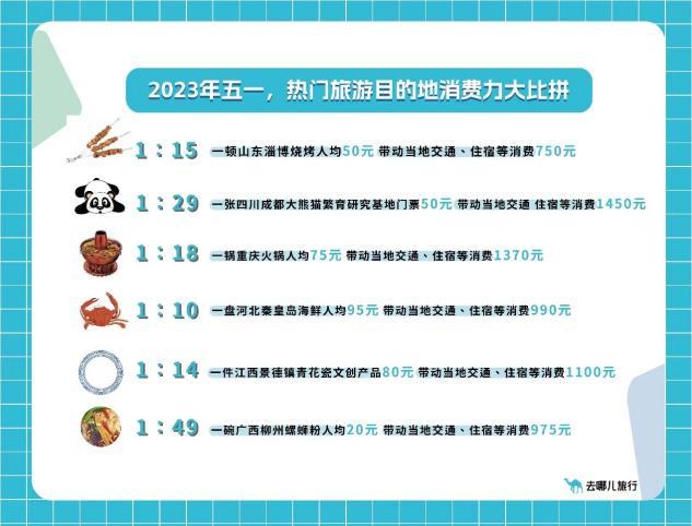 旅游數(shù)據(jù)爆火的同時,消費需求也呈現(xiàn)出新的變化?,F(xiàn)在,消費者更加重視健康和安全,自然和戶外旅游成為熱門選擇。同時,內(nèi)容個性化和定制化旅游體驗需求增多,消費者更加注重個人興趣,更愿意嘗試內(nèi)容獨特的旅游項目,如燒烤美食游、風(fēng)箏文化游等等。例如,以“燒烤”火出圈的淄博,五一酒店預(yù)訂量爆發(fā)性增長了20倍。游客們不僅走得更遠,消費更多,而且更加注重消費內(nèi)容品質(zhì)和過程體驗。