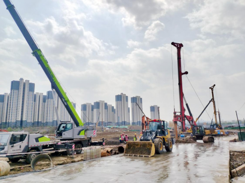截至目前,項(xiàng)目前期四證已辦理完成,臨時(shí)用水接駁施工、圍擋施工、沖洗平臺搭建、臨電供電配置、支護(hù)樁及工程樁施工已基本完成,目前正在進(jìn)行主樓土方開挖和塔吊安裝工作。