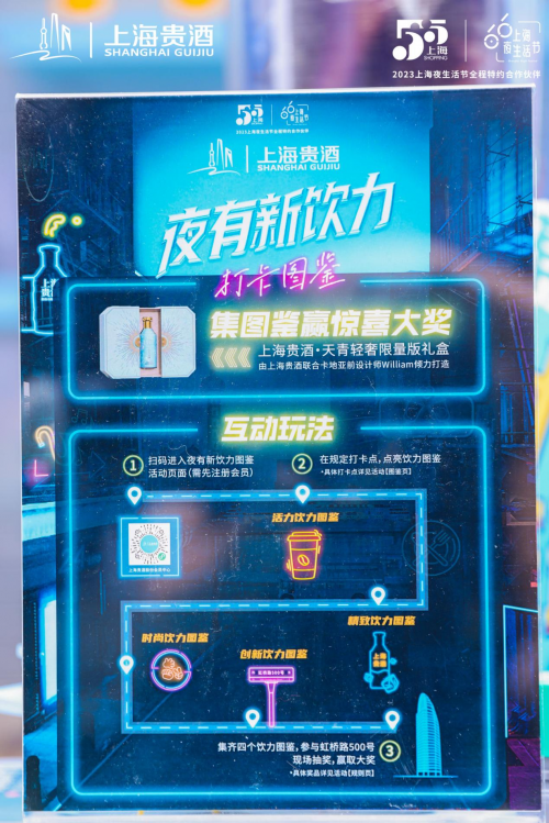 “2023上海夜生活節(jié)”正如火如荼地進(jìn)行,上海貴酒營造創(chuàng)新消費體驗,撬動消費活力,打造了貫穿整個6月“夜有新飲力”主題活動,攜手滬上高端餐飲及深受年輕消費者青睞的網(wǎng)紅餐廳發(fā)起全城總動員,創(chuàng)造“餐+酒+娛”場景融合新模式 ,形成線上線下互動營銷、休閑娛樂于一體的創(chuàng)新消費場景,助力上海點亮城市夜經(jīng)濟。