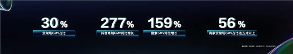 2023抖音電商生態(tài)大會數(shù)據(jù)顯示:從2022年5月1日至今年4月30日抖音商城中,貨架場GMV占比達到30%,搜索的GMV同比增長159%,有56%的商家貨架場GMV占比超過50%。