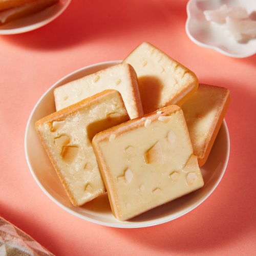更讓人驚喜的,除了原有的原味、抹茶味、檸檬味等口味,梅尼耶干蛋糕又新研發(fā)出了添加真實(shí)黃桃果粒黃桃味、添加椰子片的椰子味以及含有巴旦木片的巴旦木味三種口味。 “老婆餅”里不一定有“老婆”,梅尼耶干蛋糕的新口味里可有真材實(shí)料噢!