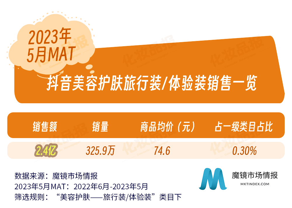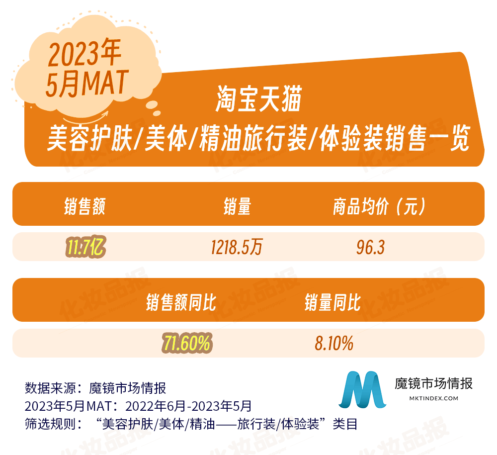 近日,國(guó)內(nèi)零售洞察公司魔鏡市場(chǎng)情報(bào)發(fā)布了一份關(guān)于化妝品旅行裝/體驗(yàn)裝在各主流電商平臺(tái)的銷售調(diào)研報(bào)告。報(bào)告統(tǒng)計(jì)的類目主要針對(duì)彩妝、香水、美妝工具、美容護(hù)膚、美體和精油類旅行裝/體驗(yàn)裝,統(tǒng)計(jì)調(diào)查的平臺(tái)涵蓋淘寶、天貓、抖音等,統(tǒng)計(jì)周期為2022年6月-2023年5月。