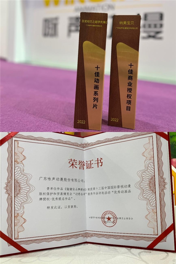 ? ? 2023年7月20日-7月23日,第十三屆中國國際影視動漫版權(quán)保護(hù)和貿(mào)易博覽會(簡稱“漫博會”)在東莞舉辦,詠聲動漫以優(yōu)異表現(xiàn)榮獲三項大獎。其中,豬豬俠X納美寶貝聯(lián)名系列榮獲“中國IP Bank獎——十佳商業(yè)授權(quán)項目”,《百變校巴之超學(xué)先鋒1》榮獲“中國IP Bank獎——十佳動畫系列片”。詠聲動漫《豬豬俠品牌授權(quán)》則斬獲“動感金羊”優(yōu)秀動畫品牌授權(quán)-優(yōu)秀提名作品。