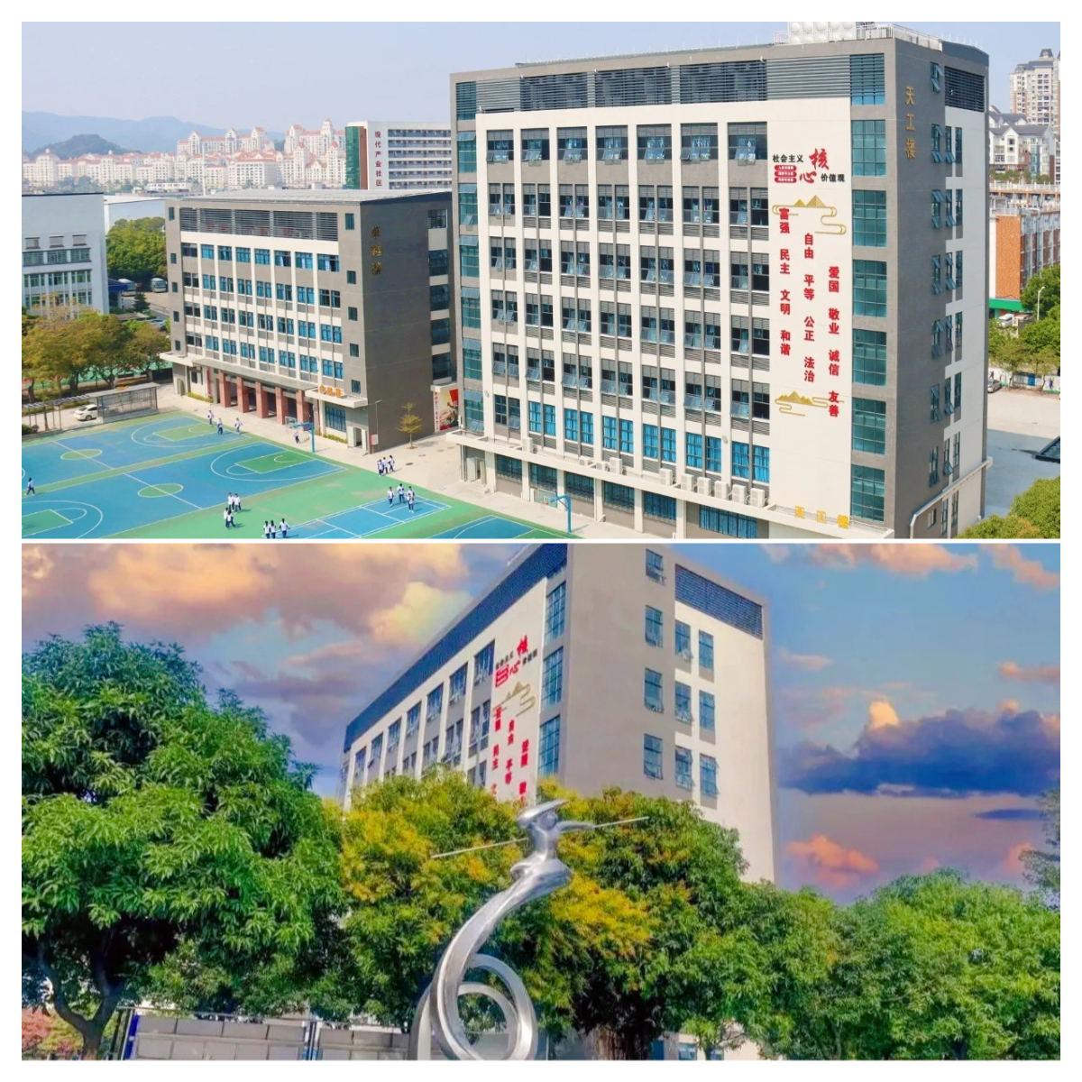 學校位于環(huán)境優(yōu)美、交通方便的廣州門戶—花都區(qū),地鐵9號線直達校區(qū);學校總占地面積70000多平方米,兩個食堂,可容納6000人同時就餐,一個標準足球場及環(huán)形跑道,5個標準籃球場,一個學生文化廣場,動靜結合,為提供學生舒適優(yōu)美的環(huán)境。