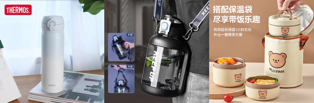 身體好才能學習好,想擁有健康體魄,健康的飲食生活很重要。出門上課可以帶著時尚漸變的膳魔師保溫杯、原創(chuàng)設計的格沵鈴蘭系列保溫杯等,夏天鎖冷冬天保溫,還有能滿足一天飲水需求的大容量富光噸噸杯,適合上體育課或者戶外運動時攜帶。下課后去食堂打包飯菜,可選擇泰福高密封防燙飯盒、或者既能盛菜又能放水果的家の物語日本進口便當盒、以及便攜衛(wèi)生的萬家全餐具盒三件套等。