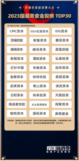 《2023國潮美食金投榜·TOP30》則用來表彰資本作為新消費潮流興起的預見者、助推器與價值捕手,在企業(yè)發(fā)展的道路上所發(fā)揮的舉足輕重的作用。