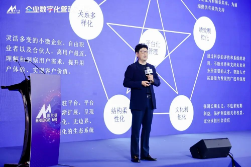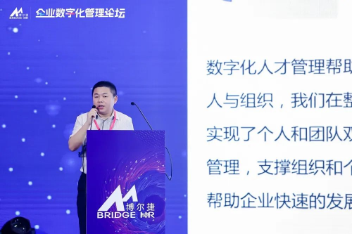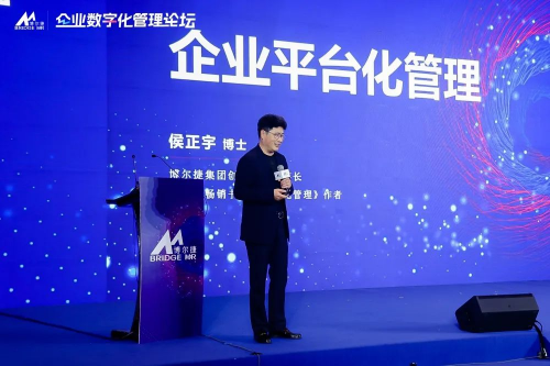 侯博士以2019年與中歐國際工商學院的忻榕教授、阿里巴巴產業(yè)互聯(lián)網中心主任陳威如教授歷經兩年共同創(chuàng)作的《平臺化管理》一書作為理論指導,以及多年人力資源行業(yè)經驗的沉淀和敏銳的市場洞察,總結構建平臺化企業(yè)的重要性,包括小前端、強中臺和穩(wěn)后臺的建設。侯博士介紹了平臺化管理的五化模型:能力數字化、關系數字化、績效顆?;?、結構柔性化、以及文化利他化。侯博士分享了博爾捷集團的成功經驗,鼓勵其他企業(yè)在探索和實踐中進行數字化轉型和組織變革,以實現平臺化管理。