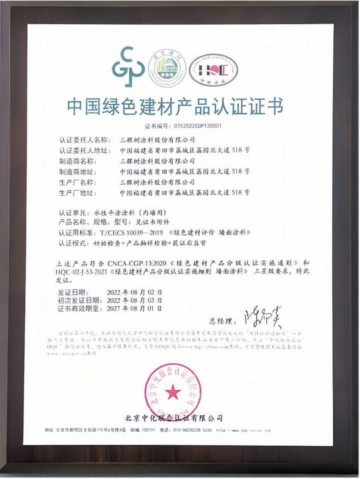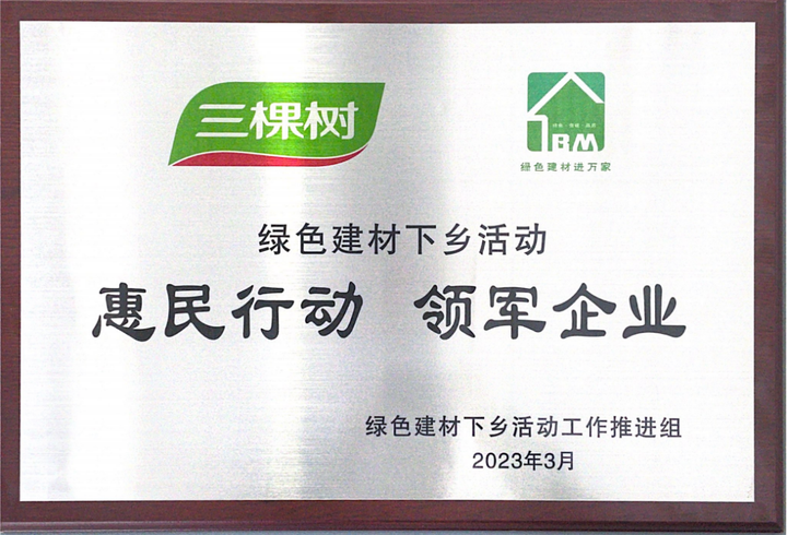 3月31日,以“綠色建材進萬家 美好生活共創(chuàng)建”為主題的全國綠色建材下鄉(xiāng)活動福建站啟動會在泉州南安舉行。三棵樹憑借綠色建材下鄉(xiāng)方面的突出貢獻獲得“綠色建材下鄉(xiāng)活動-惠民行動領(lǐng)軍企業(yè)”稱號,多款綠色產(chǎn)品獲得中國綠色建材產(chǎn)品認(rèn)證證書。