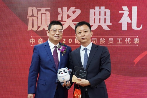 (中意人壽趙雪松董事長為20年司齡員工代表頒獎(jiǎng))