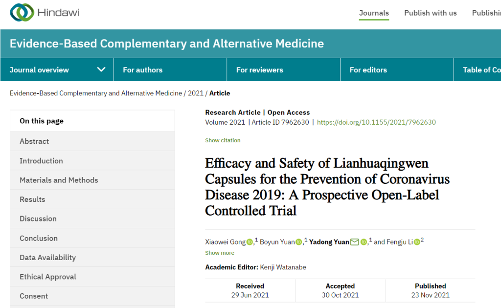 中成藥連花清瘟預(yù)防新冠肺炎研究取得重要進(jìn)展。近日,由中國(guó)河北醫(yī)科大學(xué)第二醫(yī)院呼吸與危重癥醫(yī)學(xué)科、武警河北總隊(duì)醫(yī)院醫(yī)學(xué)影像科共同撰寫(xiě)的科研論文《連花清瘟膠囊預(yù)防新型冠狀病毒肺炎的有效性和安全性研究:前瞻性開(kāi)放標(biāo)簽對(duì)照試驗(yàn)》于近日在國(guó)際期刊《循證補(bǔ)充和替代醫(yī)學(xué)》發(fā)表,揭示出連花清瘟在預(yù)防新冠感染中的作用,引發(fā)學(xué)界廣泛關(guān)注。