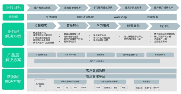 業(yè)務(wù)層:神策數(shù)據(jù)擁有豐富的教育行業(yè)交付經(jīng)驗(yàn),現(xiàn)已服務(wù)百余家知名教培企業(yè),能夠充分理解教培業(yè)務(wù),為企業(yè)提供個(gè)性化、數(shù)字化發(fā)展規(guī)劃與支持。