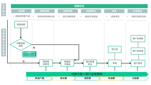 當(dāng)前,教培企業(yè)大多面臨著“大量公海線索難以管理,傳統(tǒng)電銷方式不僅耗費(fèi)人力還打擾用戶”的困境,因此,設(shè)計(jì)一套可落地的線索分層培育體系是十分必要的。