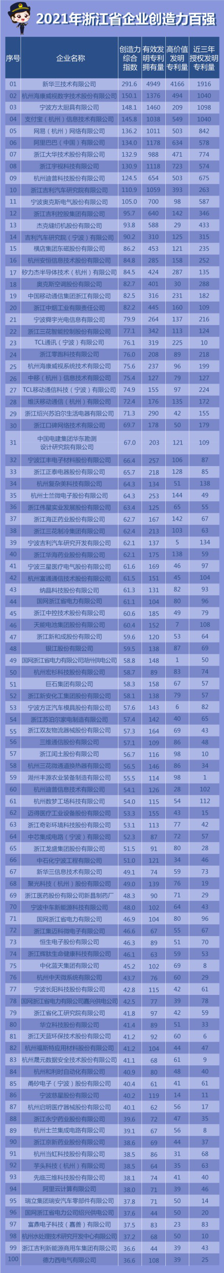 據(jù)悉,該榜單去年起首次發(fā)布,今年以2021年底數(shù)據(jù)為基準,根據(jù)有效發(fā)明專利數(shù)量、高價值發(fā)明專利數(shù)量和近三年發(fā)明專利授權(quán)數(shù)量等指標,對省內(nèi)企業(yè)創(chuàng)造力進行了評價排名。