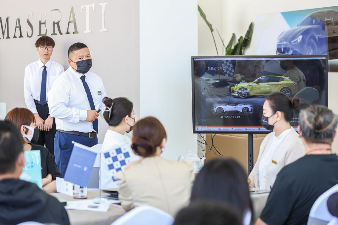 活動開場,瑪莎拉蒂銷售內(nèi)訓(xùn)師帶領(lǐng)大家品鑒瑪莎拉蒂新款車型,體驗手工工藝精心雕琢帶來的至臻享受。在傳奇三叉戟之中,駕馭激情與風范。