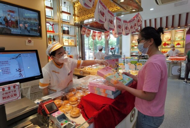 “去年這個巧果禮盒就特別火,差點兒沒搶到,這不是又快到七夕節(jié)了嘛,所以今天門店還沒開門我就過來了,就是奔著這個禮盒來的。”在北京稻香村位于東直門的“東城食尚店”里,一位女孩正在挑選著“巧果”糕點禮盒。據工作人員介紹,今年為了方便顧客選購,北京稻香村還上線了微信小程序,顧客可以通過線上下單巧果禮盒等產品,到店取貨,節(jié)約購買時間。