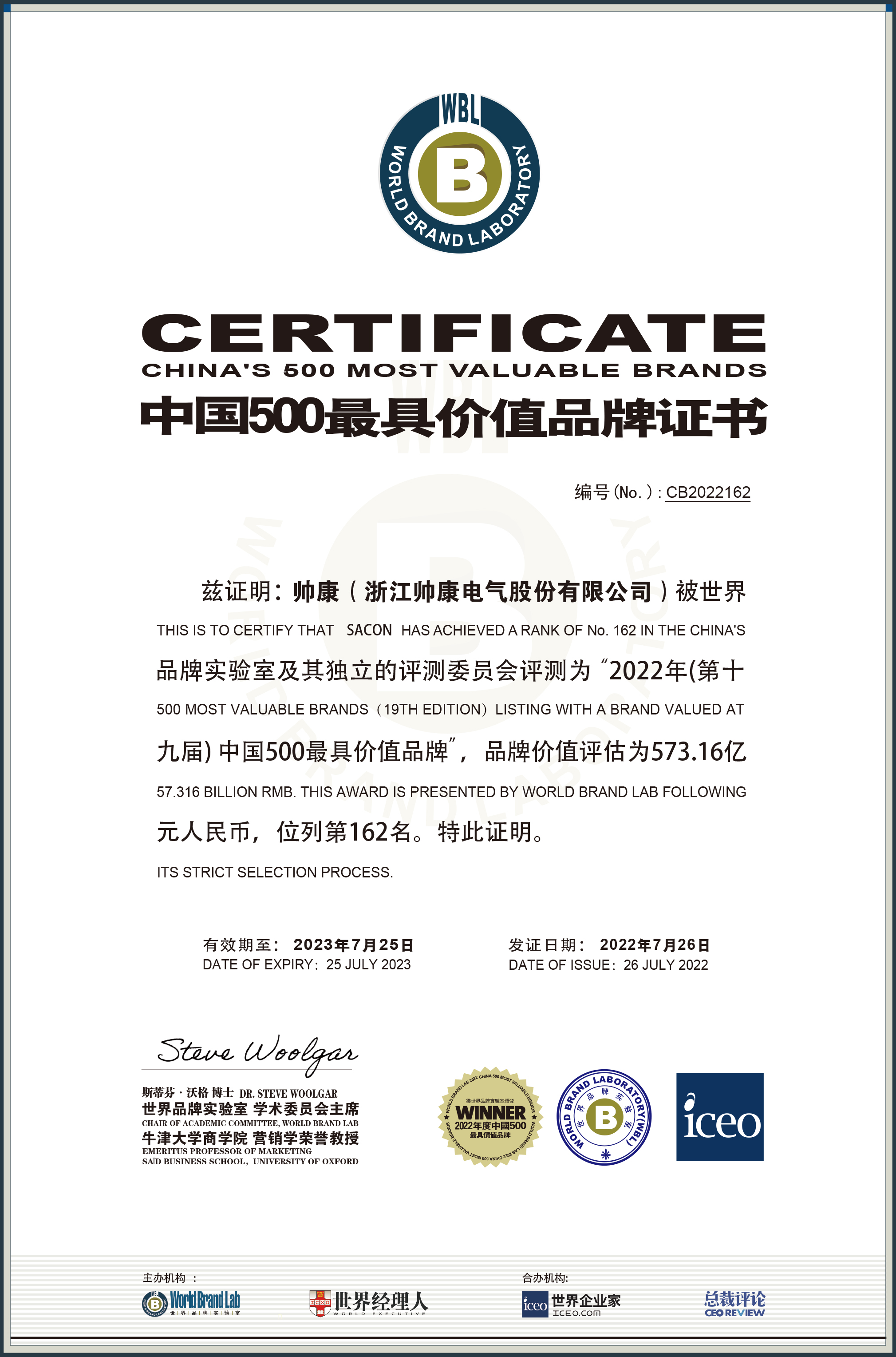 2022年7月26日,由世界品牌實(shí)驗室(World Brand Lab)主辦的第十九屆世界品牌大會在北京舉行,會上發(fā)布了2022年《中國500最具價值品牌》分析報告。作為健康廚房開創(chuàng)者,帥康以573.16億元的品牌價值連續(xù)15年強(qiáng)勢入選榜單,在專業(yè)廚電品牌中位列第一,品牌領(lǐng)跑地位得到行業(yè)內(nèi)外的廣泛認(rèn)可。