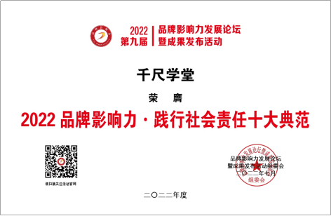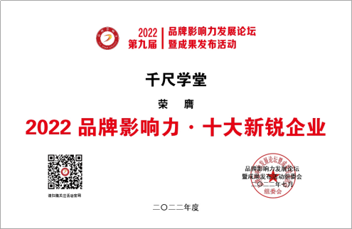 近日,由《發(fā)現(xiàn)品牌》欄目組、對外經(jīng)濟貿(mào)易大學中國國際品牌戰(zhàn)略研究中心、《中國企業(yè)報》集團主辦的2022品牌影響力發(fā)展論壇暨成果發(fā)布活動正式舉辦?;顒右浴按罅Πl(fā)展品牌戰(zhàn)略促進經(jīng)濟高質(zhì)量發(fā)展”為主題。圍繞中國品牌創(chuàng)建行動,培育新型消費,實施領航企業(yè)培育工程,促進專精特新小巨人企業(yè)培育等內(nèi)容展開分析探討。在著重推介具有優(yōu)秀成長性或影響力的品牌環(huán)節(jié)中,千尺學堂榮膺“2022品牌影響力·十大新銳企業(yè)”、“2022品牌影響力·踐行社會責任十大典范”兩項大獎。
