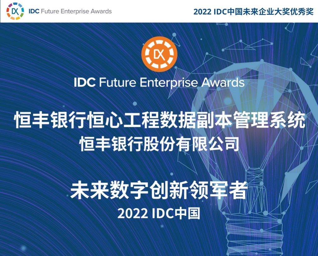 9月1日,IDC中國(guó)正式發(fā)布2022IDC中國(guó)未來企業(yè)大獎(jiǎng)優(yōu)秀案例獲獎(jiǎng)名單,恒豐銀行憑借恒心工程數(shù)據(jù)副本管理系統(tǒng)項(xiàng)目獲評(píng)“未來數(shù)字創(chuàng)新領(lǐng)軍者”優(yōu)秀獎(jiǎng)。