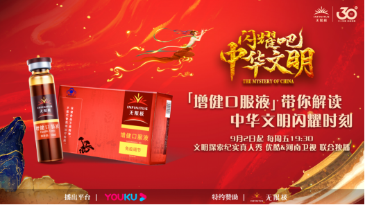 《閃耀吧!中華文明》已上線的先導(dǎo)片和總預(yù)告片透露出眾多令人期待的細(xì)節(jié)線索,9月2日正片即將驚艷開播,六大歷史文明的謎團將隨著正片的播出逐一解鎖,屆時,和無限極增健口服液一起探索中華文化,領(lǐng)略閃耀在歷史中的文明高光吧!