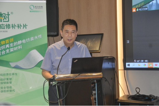 松力生物聯(lián)合創(chuàng)始人、副總經(jīng)理楊莉分享了松力生物的軟組織誘導(dǎo)性生物材料的研究進展,她介紹稱,松力生物可再生復(fù)合疝修補補片由松力生物自主研發(fā)的靜電紡親水性軟組織誘導(dǎo)性生物材料制成,此外,分享了這種新型復(fù)合生物材料在動物實驗中成功誘導(dǎo)骨骼肌、韌帶、肩袖、子宮壁、腸壁組織再生的研究成果。