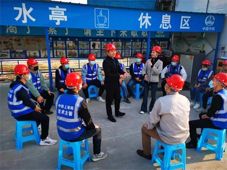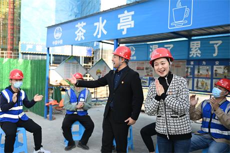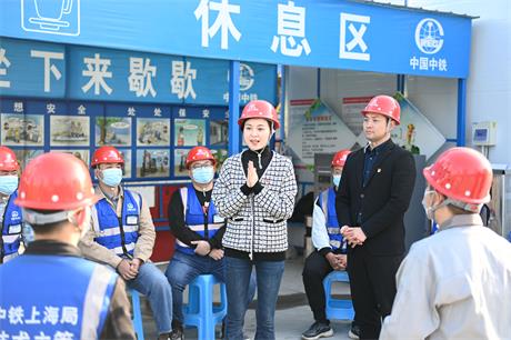 11月2日下午,在中鐵上海局三公司創(chuàng)智天地項(xiàng)目部工地,黨的二十大代表,黨的二十代代表,國(guó)家一級(jí)演員,新一代黃梅戲藝術(shù)傳承人,安徽省黃梅戲劇院的袁媛正在為工友們表演經(jīng)典的黃梅戲片段。