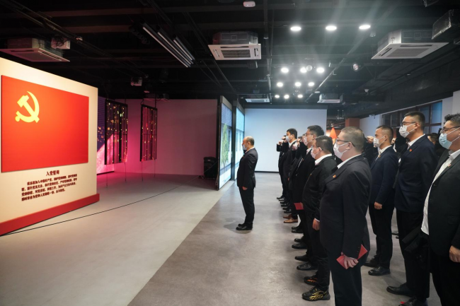 在中共蘇州獨(dú)立支部舊址,黨員們走過“燃血青春”中共蘇州獨(dú)立支部史跡陳列展示區(qū)、“青春我行”實(shí)踐活動(dòng)體驗(yàn)區(qū)、“青春劇場”多功能廳,通過聆聽革命先烈的光輝事跡、沉浸式體驗(yàn)革命年代的艱苦歷程,系統(tǒng)回顧了中共蘇州獨(dú)立支部的創(chuàng)建背景、發(fā)展過程及影響意義,深刻感悟中共蘇州獨(dú)立支部的發(fā)展史、革命史和奮斗史,在恢宏磅礴的歷史畫卷中感悟著共產(chǎn)黨人堅(jiān)定的理想信念。隨后,在“青春誓言”宣誓區(qū),全體黨員在牛春雷的帶領(lǐng)下面對黨旗莊重宣誓,重溫入黨誓詞,切實(shí)用紅色文化滋養(yǎng)初心、淬煉品行。