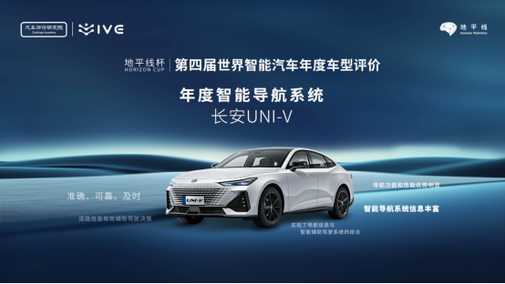 長安UNI-V榮獲“地平線杯”第四屆世界智能汽車年度智能導航系統(tǒng)榮譽稱號。