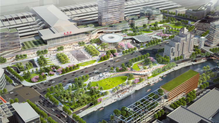 規(guī)劃形成三廊兩帶的空間結(jié)構(gòu),打造區(qū)域樞紐互融節(jié)點、運河創(chuàng)新復(fù)興樣板、社區(qū)營建更新示范,打造產(chǎn)城門戶,通過文化復(fù)興、城河共融,重塑融貫古今的文化旅游新基地。