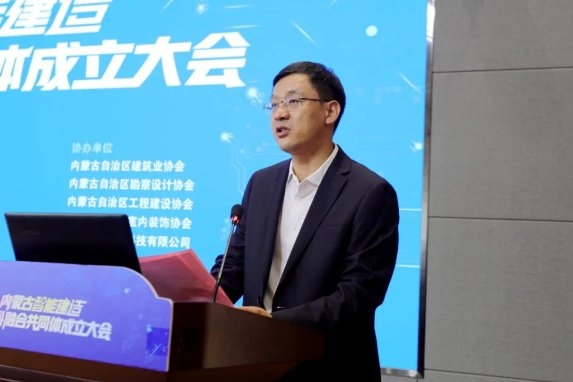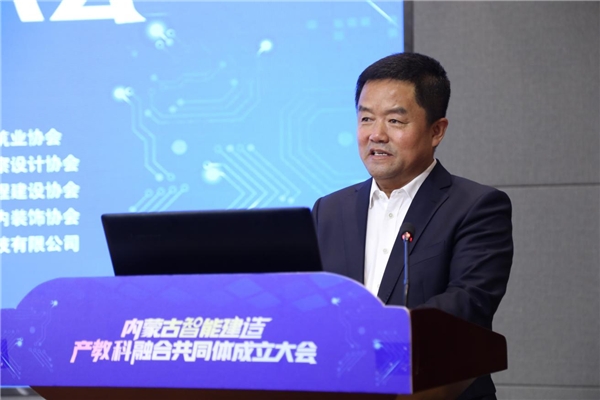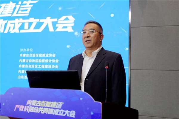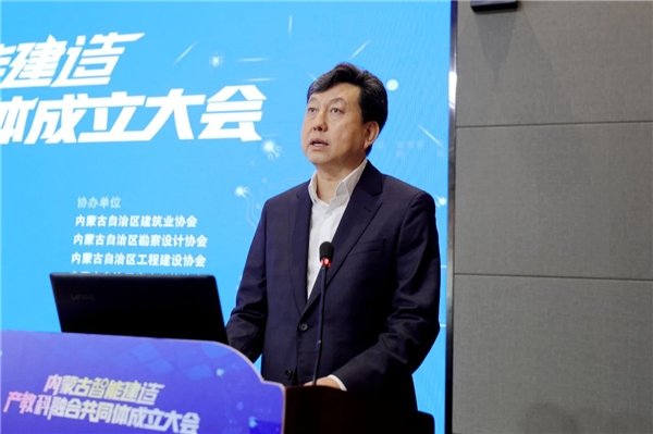 王剛講話,他指出,內蒙古智能建造產教科融合共同體的成立,標志著內蒙古自治區(qū)智能化建設領域的職業(yè)教育邁入了一個新的發(fā)展階段,對加快內蒙古自治區(qū)建筑行業(yè)轉型升級,推動內蒙古自治區(qū)經濟發(fā)展具有重要意義,希望共同體以及各成員單位把握綠色建材、裝配式建筑這一大發(fā)展方向,注重智能化與各種綠色低碳材料、工業(yè)化部品部件、清潔能源和超低能耗建筑的結合,為企業(yè)和社會培養(yǎng)、輸送更多高素質技術技能人才,在校企合作中幫助企業(yè)、行業(yè)孵化更加成熟的新技術體系,共同提升內蒙古智能建造產教科融合共同體對建設現(xiàn)代產業(yè)體系的支撐作用。