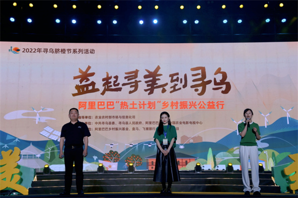 客家韻、紅土風、東江源、橘鄉(xiāng)情,尋烏不尋常!11月21日晚,2022年尋烏臍橙節(jié)系列活動之阿里巴巴“熱土計劃”鄉(xiāng)村振興公益行—益起尋美到尋烏系列活動,在江西省尋烏縣客家小鎮(zhèn)音樂噴泉廣場盛大舉行。本次活動由農(nóng)業(yè)農(nóng)村部市場與信息化司指導,中共尋烏縣委、尋烏縣人民政府、阿里巴巴公益、中國農(nóng)業(yè)電影電視中心主辦;阿里巴巴鄉(xiāng)村振興基金、盒馬、飛豬旅行、《鄉(xiāng)約》欄目共同承辦。