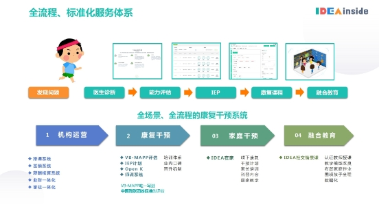 只需一間20平米的示范教室,運(yùn)用標(biāo)準(zhǔn)化的服務(wù)方案,就可以把深耕行業(yè)多年沉淀的IDEA教學(xué)模式帶回機(jī)構(gòu)/學(xué)校/幼兒園/醫(yī)療單位,進(jìn)行數(shù)字化、標(biāo)準(zhǔn)化的康復(fù)干預(yù)。一個(gè)標(biāo)準(zhǔn)的、數(shù)字化管理的愛(ài)迪因教學(xué)示范教室,可以復(fù)制到任何一個(gè)線(xiàn)下中心,開(kāi)展專(zhuān)業(yè)兒童康復(fù)干預(yù)。