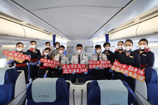 飛機(jī)起飛后,機(jī)長(zhǎng)通過客艙廣播系統(tǒng)向代表團(tuán)表達(dá)美好祝愿:“今天的航程注定意義非凡,復(fù)工達(dá)產(chǎn)、促進(jìn)外貿(mào)的共同目標(biāo),讓我們相聚在萬米高空,共同的使命,讓我們對(duì)前程充滿期待。本次航班是寧波首趟也是全國(guó)首創(chuàng)的涉外商務(wù)人員包機(jī),你們傳承著新時(shí)代浙商精神,創(chuàng)業(yè)創(chuàng)新闖天下,合心合力強(qiáng)浙江,展現(xiàn)著中國(guó)企業(yè)迎難而上的信心與勇氣。非常高興與你們同行,你們出國(guó)抓訂單、拓市場(chǎng),東航助你們?nèi)蝻w、飛全球,一路相伴、共創(chuàng)精彩。衷心祝愿大家在歐洲工作順利,帶著訂單滿載而歸,祝愿中國(guó)企業(yè)服務(wù)祖國(guó)、走向世界的航程更廣闊!”