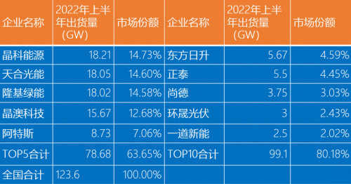 今年上半年,全國(guó)組件出貨量為123.6GW,前五大組件企業(yè)出貨量占比為63.65%,前十大組件占比80.18%。這些正在提高一體化程度的組件企業(yè)也決定著對(duì)上游電池片的采購(gòu)量。