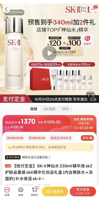 享譽(yù)全球的SK-II鎮(zhèn)店王牌神仙水,是每個(gè)精致女孩化妝臺(tái)上的必備好物。其蘊(yùn)含超過(guò)90%的天然生物成分PITERA?,從根源強(qiáng)韌修護(hù),顯著減少秋冬肌膚干燥泛紅,抑制老化因子,讓肌膚更加細(xì)膩緊致、晶瑩剔透。京東11.11期間,原價(jià)1590元的SK-II神仙水230ml裝到手價(jià)1370元,同時(shí)加贈(zèng)神仙水110ml、潔面20g、清瑩露30ml,為消費(fèi)者打造全流程的精致護(hù)膚體驗(yàn)。