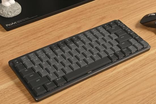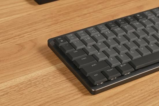 首先是大家最好奇的一點:它憑什么沒有聲音?羅技MX Mechanical系列采用的是機械矮軸,矮軸的好處就是在保留了機械鍵盤反饋感的同時,盡可能地減少噪音。在羅技官方支持的青紅茶軸內(nèi),你只要選擇了茶軸和紅軸,打字時的噪聲都是在一個非??煽氐姆秶鷥?nèi)的。輔以弧面雙色鍵帽和鋁制金屬磨砂面板,質(zhì)感很突出,商務(wù)感拉滿。