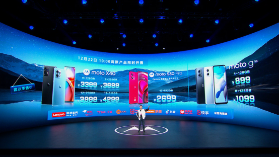 2022年12月15日19時30分,聯(lián)想moto召開了以“心無畏,赴山?!睘橹黝}的新品發(fā)布會,正式發(fā)布了moto X40、moto G53和moto S30 Pro潘通限量版(非凡洋紅)三款新品。其中,“手機(jī)中的SUV”moto X40,首發(fā)價3399元起;“千元5G全擊手”moto G53,首發(fā)價899元起;而moto S30 Pro潘通限量版(非凡洋紅),首發(fā)價則是2699元起。
