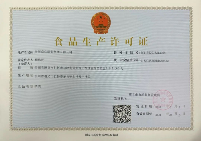 南將酒業(yè)集團(tuán)生產(chǎn)許可證